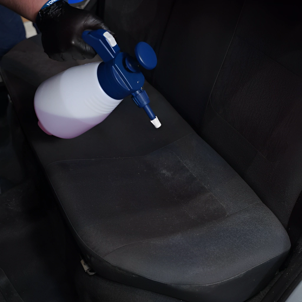 - Após a lavar o estofado, aplicar uma fina névoa do sanitizante finalizador diluído na proporção de 1:10 e aguardar 10 minutos para o produto agir.