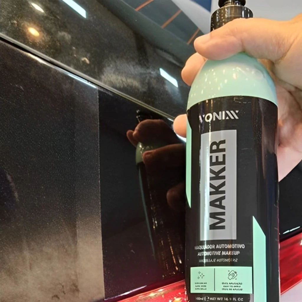 O Makker é um maquiador automotivo e chegou com o objetivo de trazer mais praticidade na hora de deixar o seu veículo com menos imperfeições. Sua formula foi desenvolvida exclusivamente para preencher pequenos defeitos e renovar pinturas, dando brilho máximo. Também contendo microabrasivos especiais, o produto é capaz de corrigir defeitos leves se utilizado com aplicador de microfibra ou máquina. Além de maquiar, o Makker deixa um toque liso e garante proteção de até 90 dias.
