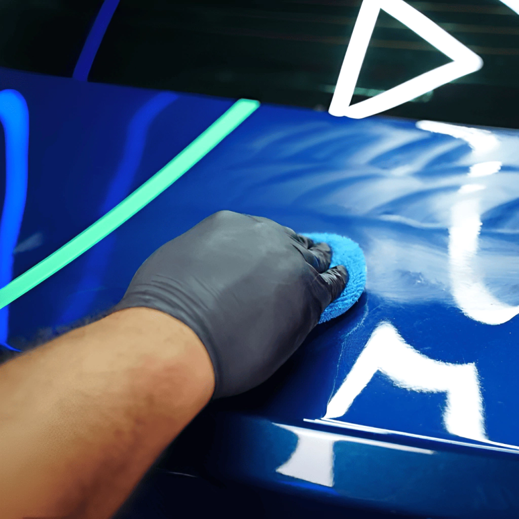 2. Aplique uma pequena quantidade de produto utilizando um aplicador de espuma ou microfibra, fazendo movimentos uniformes e circulares.