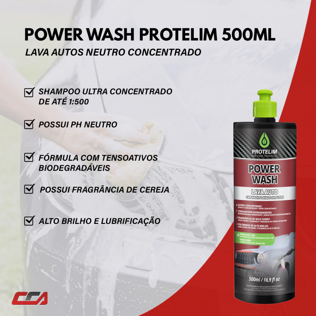 O Power Wash é um lava auto neutro com alto teor de Espuma ESTÁVEL, ultra concentrado, com diluição de até 1:400, oferecendo um ótimo custo-benefício.